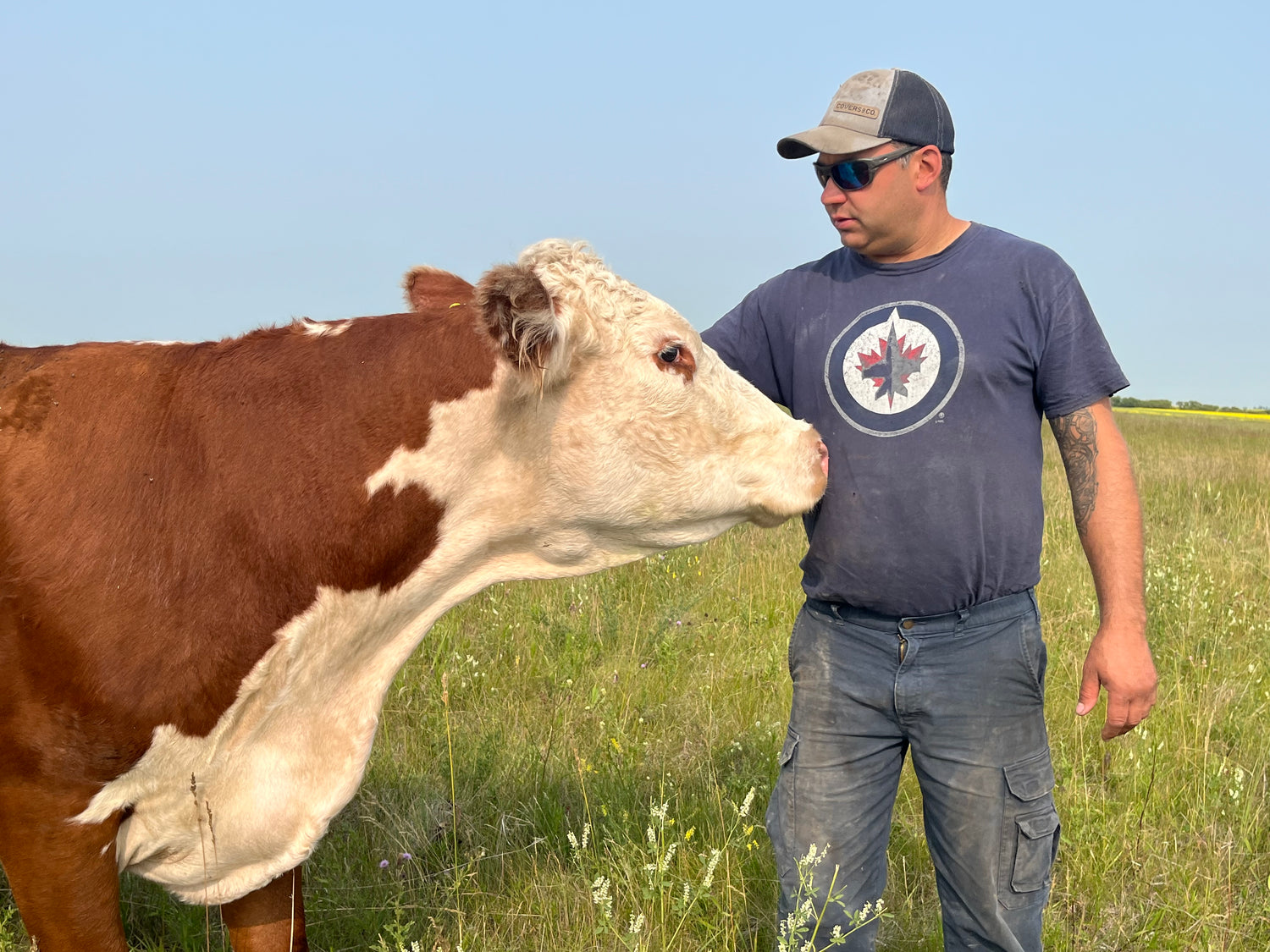 The cattle spend as much time on pasture as we can in the favourable seasons, then hay and cover crop bales in the winter. For the final 60 days they are fed a bit more grain with their forages, this helps give that marbling in the meat without the superficial fat.